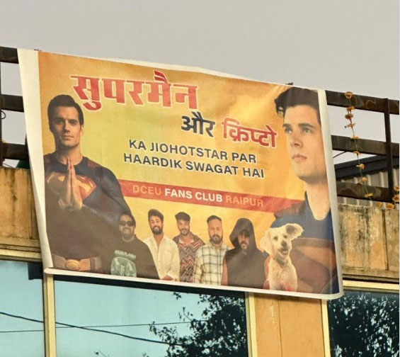 The hoarding carried a simple yet striking message: “Superman aur Krypto ka JioHotstar par hardik swagat hai” translated as “A heartfelt welcome to Superman and Krypto on JioHotstar.” Featuring Superman alongside his beloved super-dog Krypto, the visual immediately struck a chord online, quickly going viral across social media and fan communities.